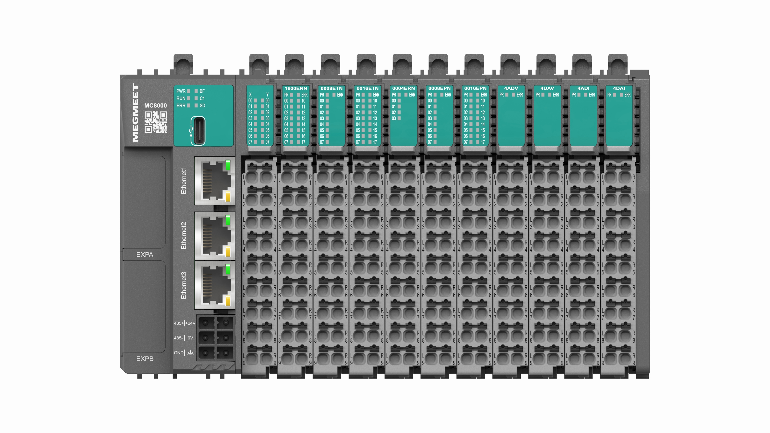 MC8000系列是MEGMEET基于mOPAX平臺全新打造的新一代高性能、高性價(jià)比中型PLC產(chǎn)品,全面兼容IEC61131-3編程規(guī)范,支持LD、ST、SFC、CFC、FBD、IL六種PLC編程語言,實(shí)現(xiàn)復(fù)雜控制邏輯的高效開發(fā)。采用刀片式模塊化設(shè)計(jì),支持多核處理器架構(gòu)與納秒級指令處理,運(yùn)算性能較傳統(tǒng)型號提升。依托EtherCAT、Profinet等多總線協(xié)議,可構(gòu)建多軸運(yùn)動(dòng)控制系統(tǒng),同步周期低至1ms,滿足智能制造設(shè)備的高速響應(yīng)需求。